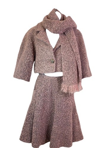 - 香奈儿斜纹呢短夹克、裙子及围巾套装